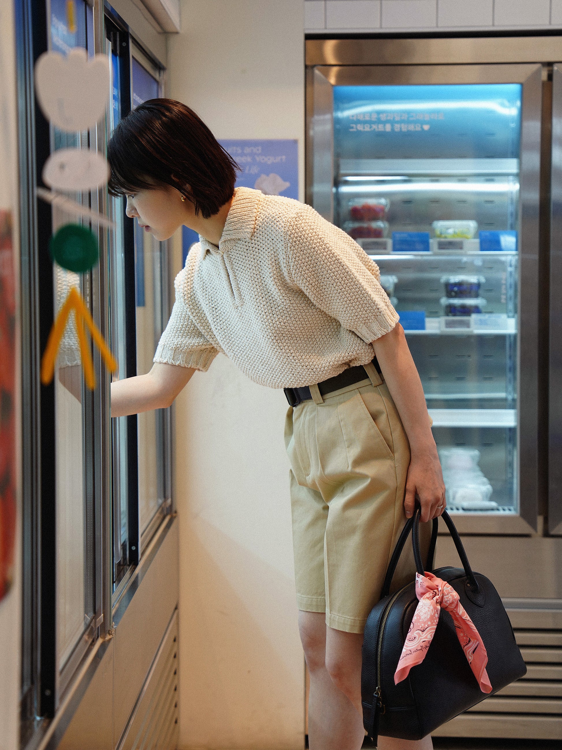 Crafted from high-density Japanese chino fabric, the texture is structured yet soft with a subtle sheen. A normal washing process adds flexibility and a naturally broken-in feel, making these shorts not only durable but also exceptionally comfortable. Thoughtful vintage-inspired details such as a high rise, bold belt loops, flap back pockets and breathable mesh-lined side pockets provide both character and functionality, ensuring a cool and pleasant wear even during the height of summer.