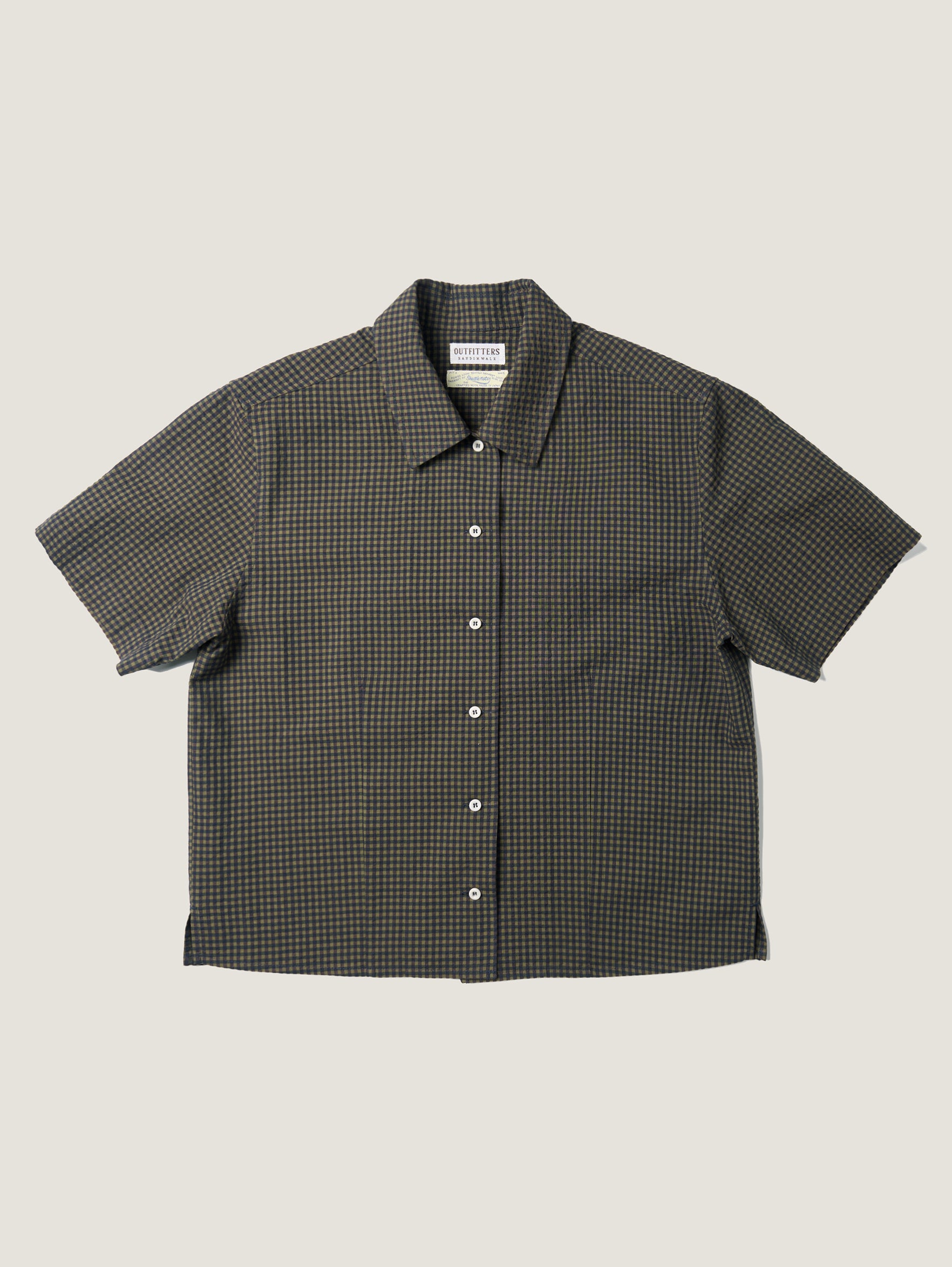 The refined gingham check pattern in soothing, natural colors creates a classic yet striking look, making this shirt a statement piece for your summer wardrobe. Brick Beige, reminiscent of warm summer sunlight, pairs perfectly with denim or light-colored pants for a standout look. Olive Navy, a unique blend of khaki and navy, can be effortlessly thrown over a silky skirt or white sleeveless top for a relaxed, elegant style.