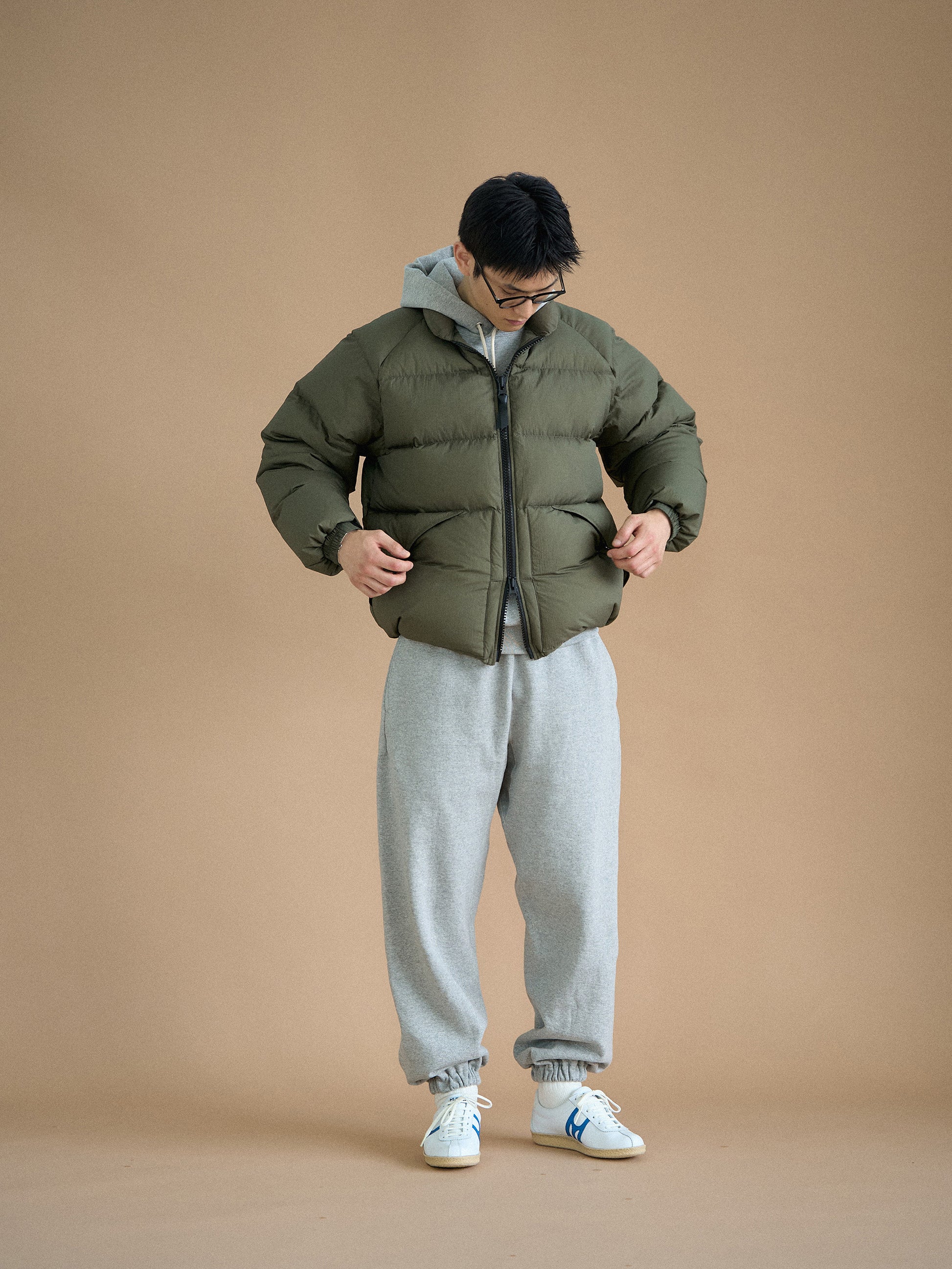 Crafted from a durable yet lightweight 100% nylon shell, the jacket features a matte texture with a subtle sheen and provides excellent wind resistance, ensuring comfort even during the coldest months. Its voluminous duck-down insulation incorporates a micro-fiber structure that efficiently traps heat, offering exceptional warmth without added weight.
