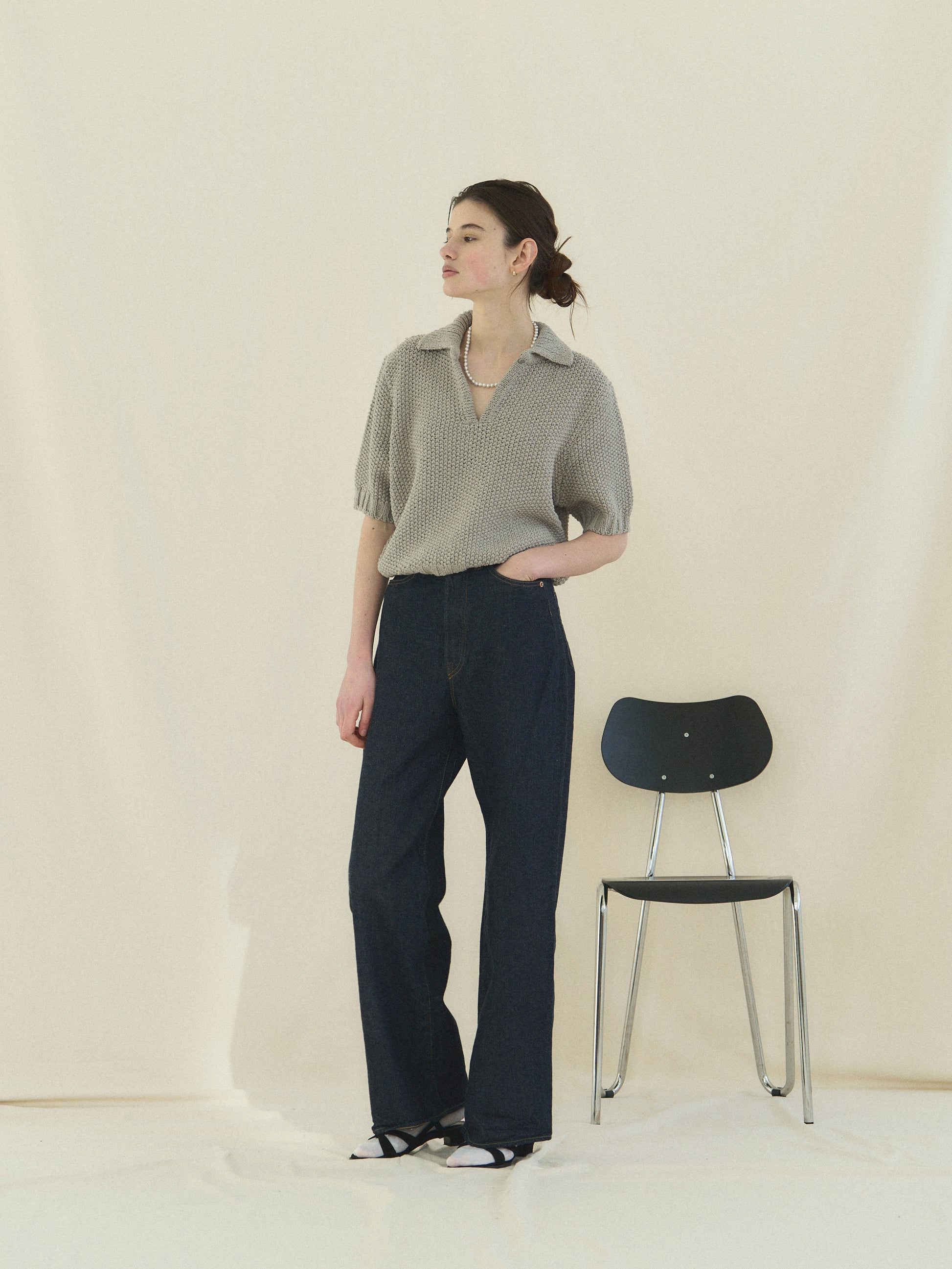 Pure Gray, a refined, non-cool-toned gray that blends surprisingly well with various skin tones. Pair it with deep indigo denim and classic jewelry for a simple yet captivating look.