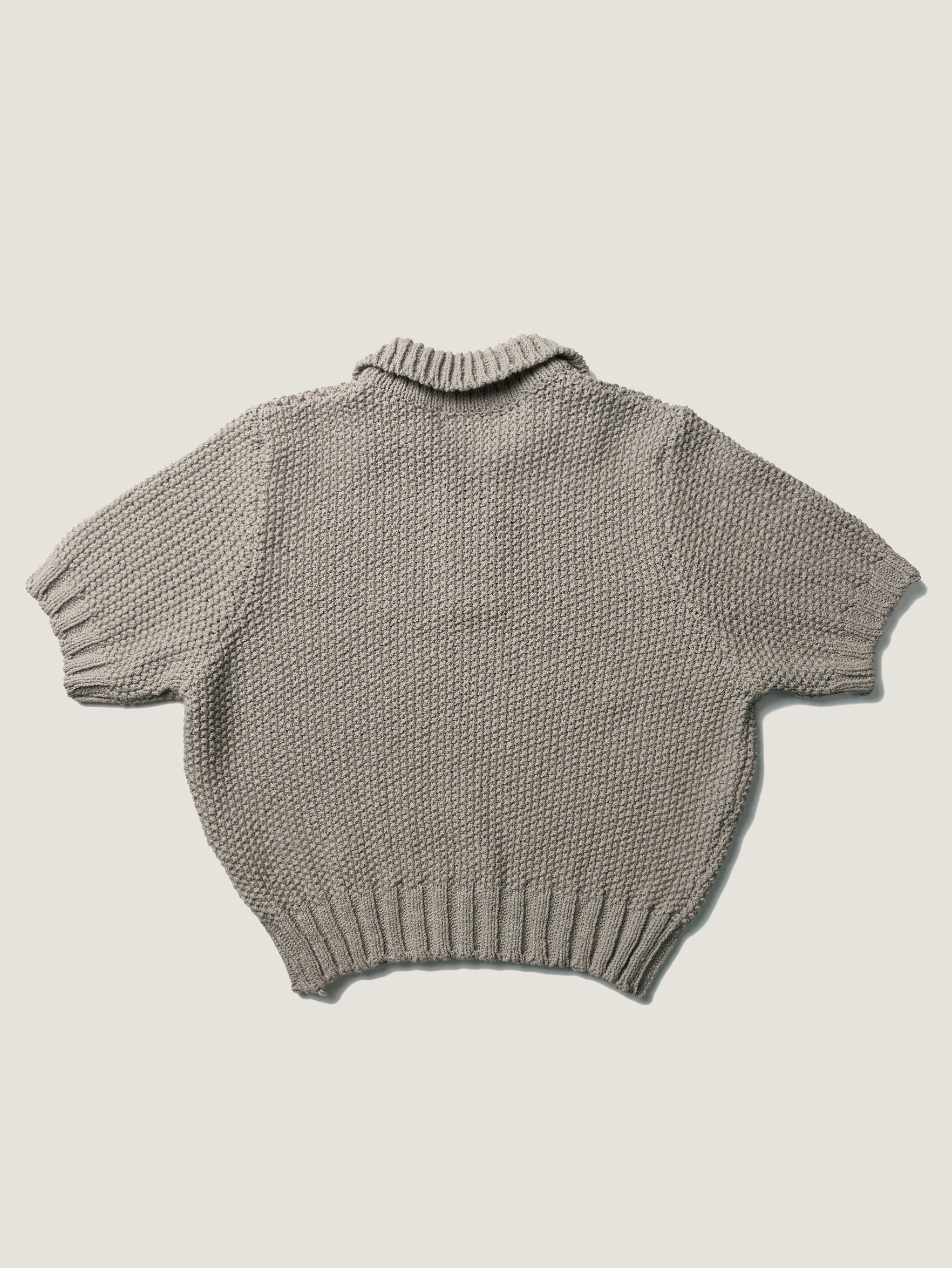 The slightly cropped length naturally tapers toward the hem, offering a stable fit and balanced proportions with a wide range of bottoms. A small button and loop detail at the neckline allows for versatile styling_ear it fastened for a polished polo look or leave it open for a relaxed V-neck feel.