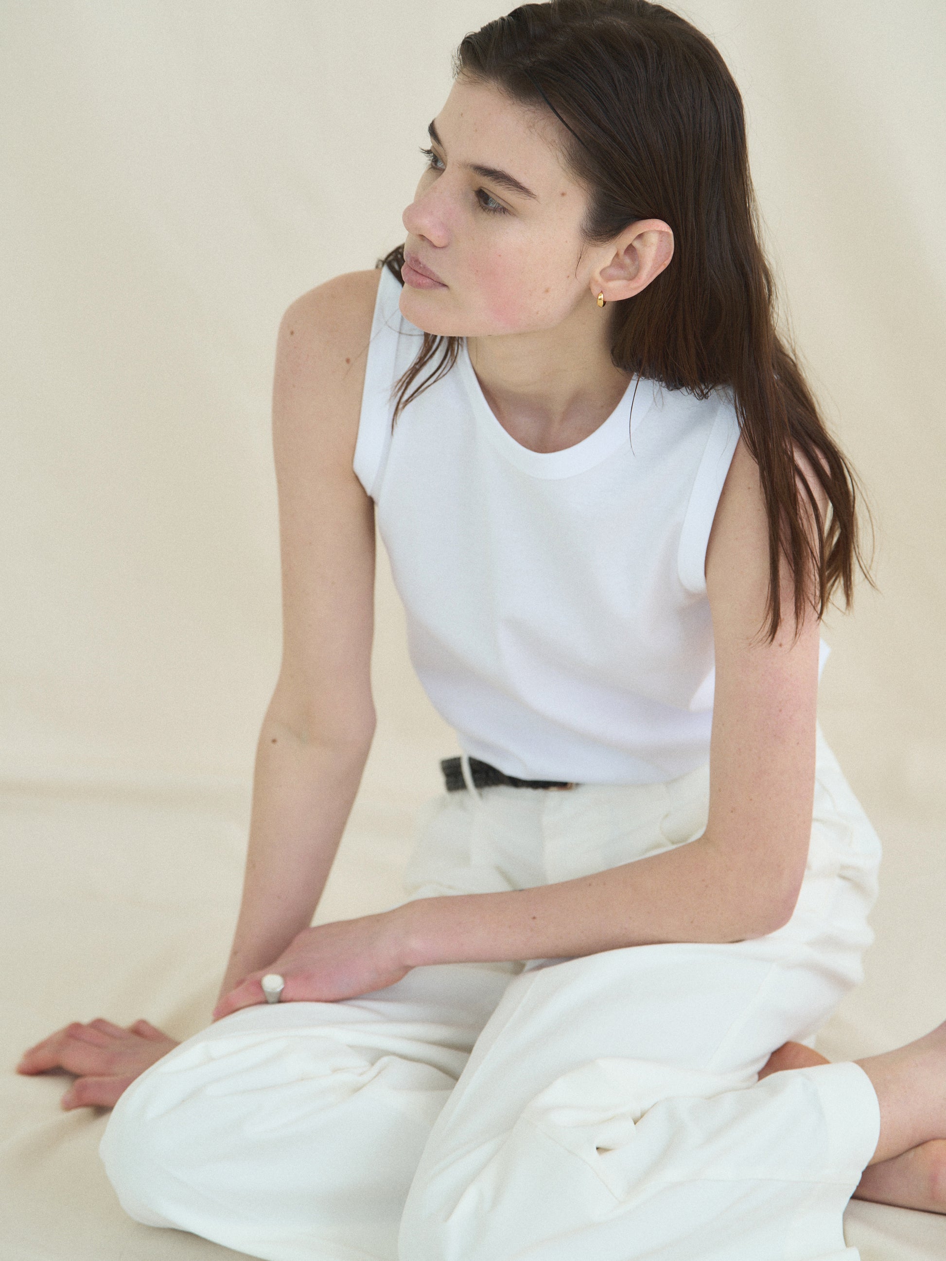 The Michelle Cotton Sleeveless captures the simple yet comfortable charm of the 90s. Made from 100% cotton, it features a silk-like finish that adds a subtle sheen and smoothness, providing a pleasant feel and comfortable wear.