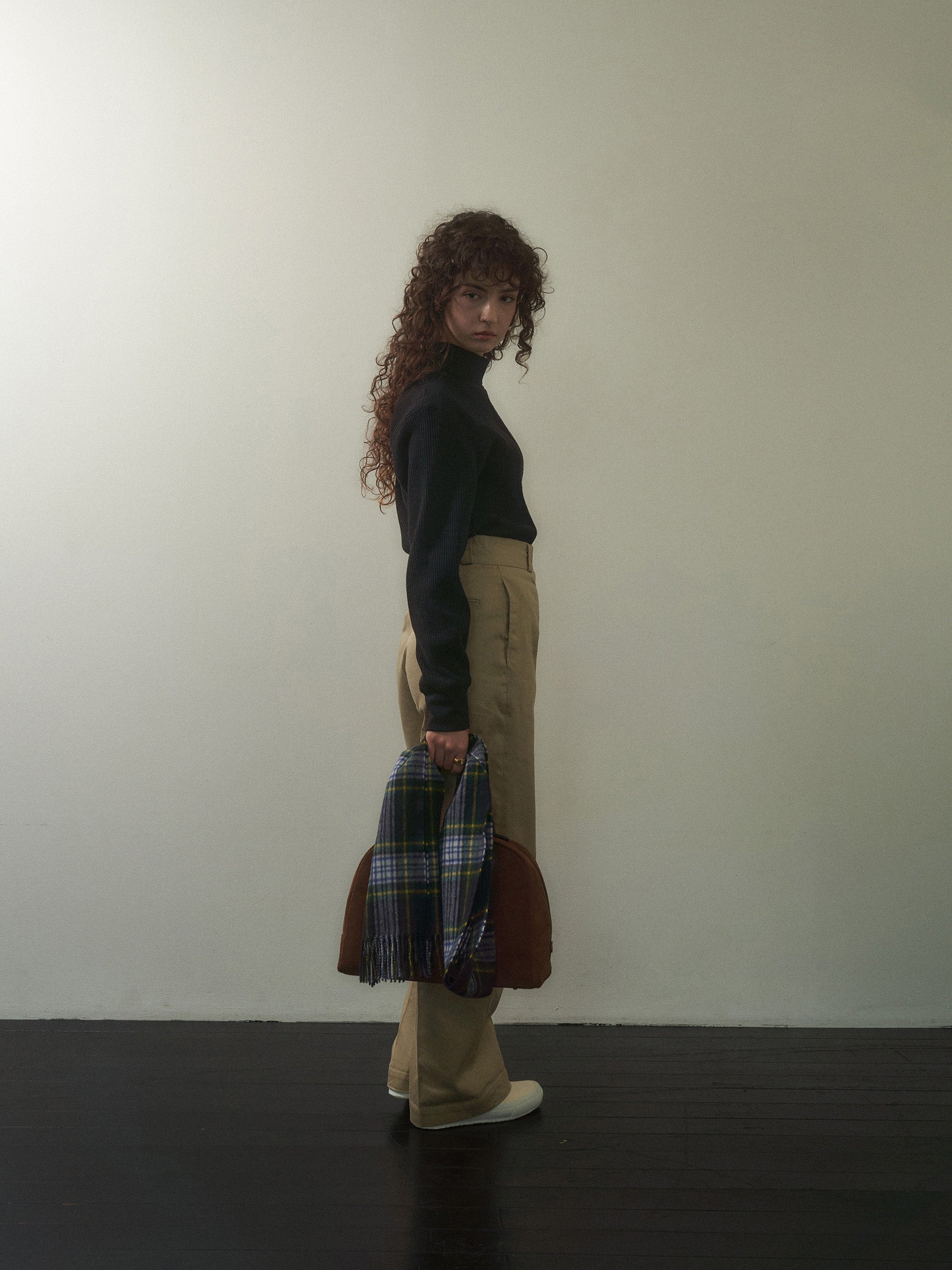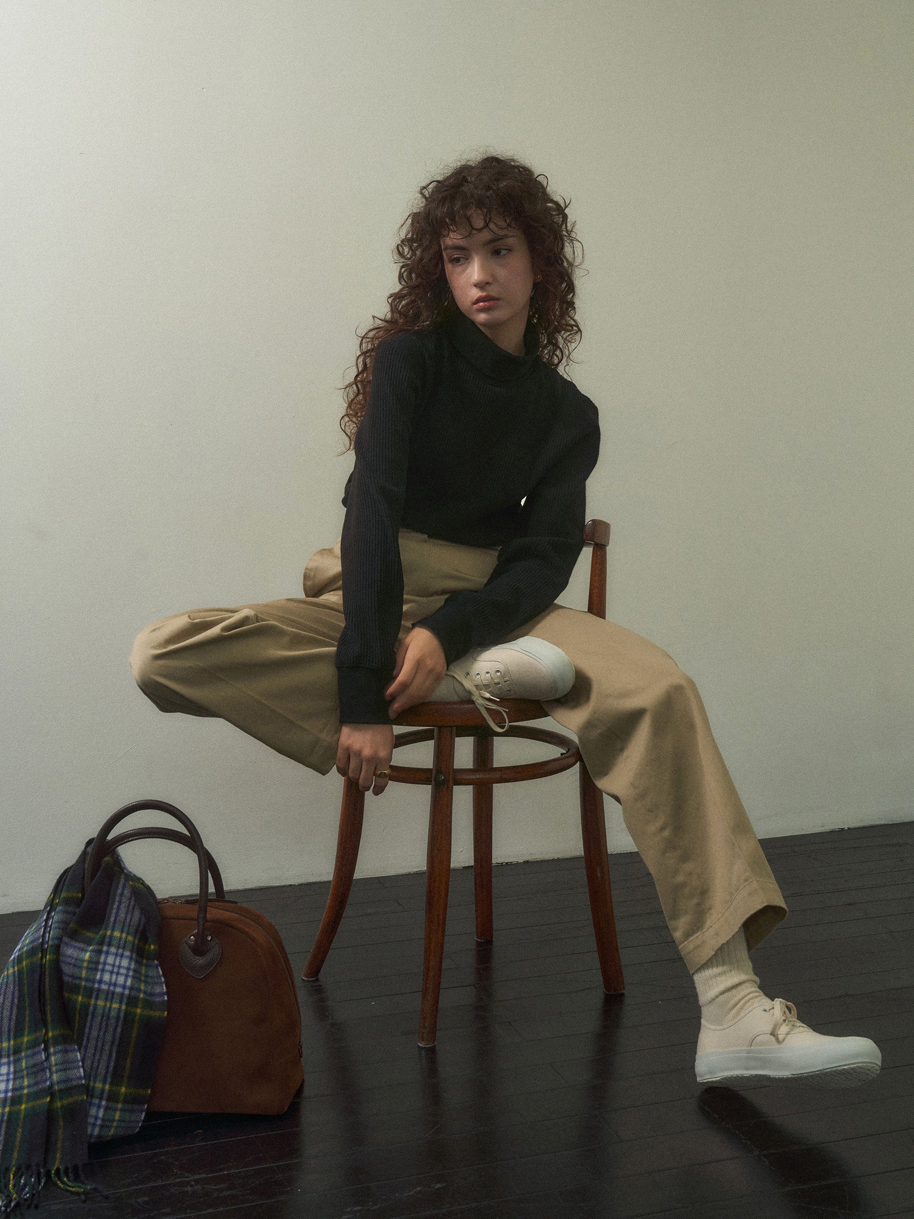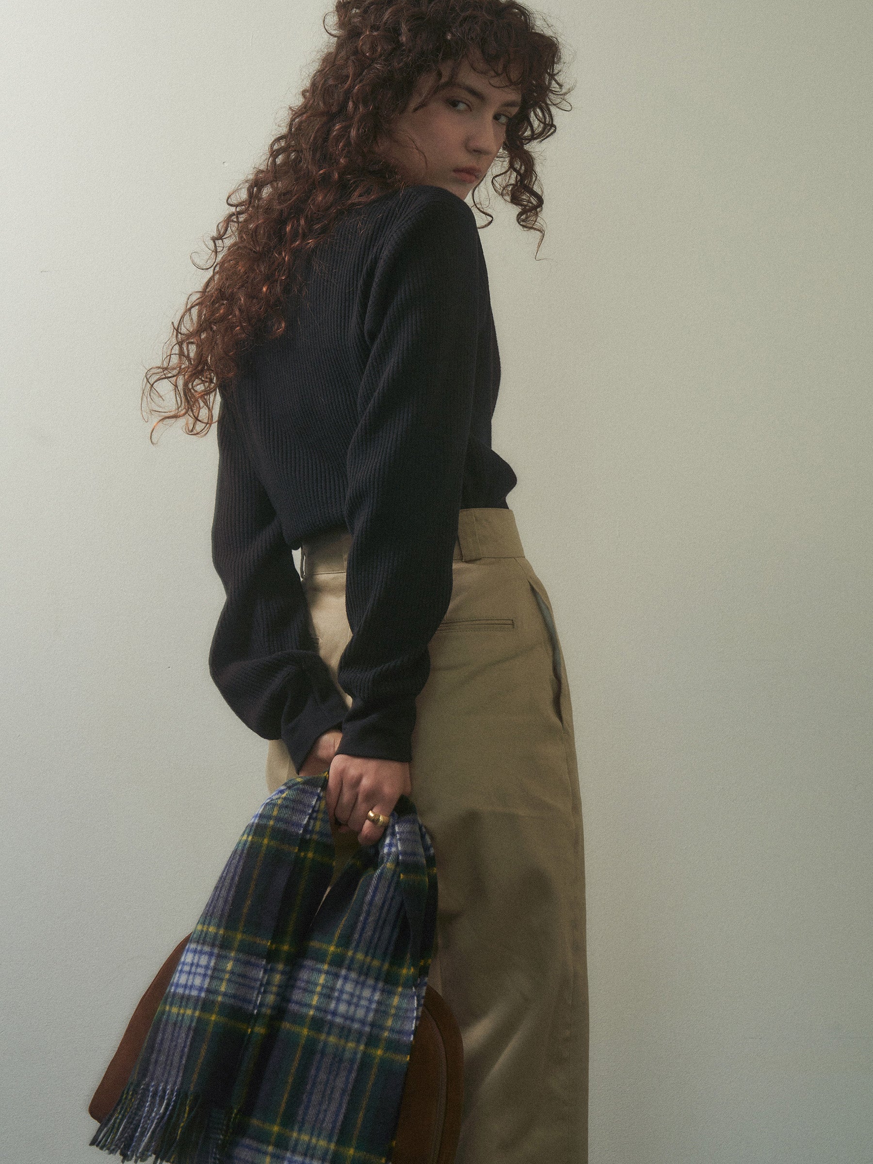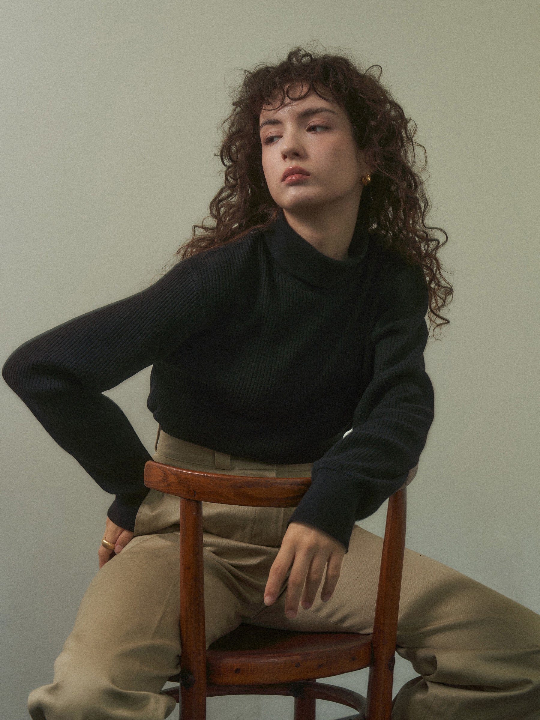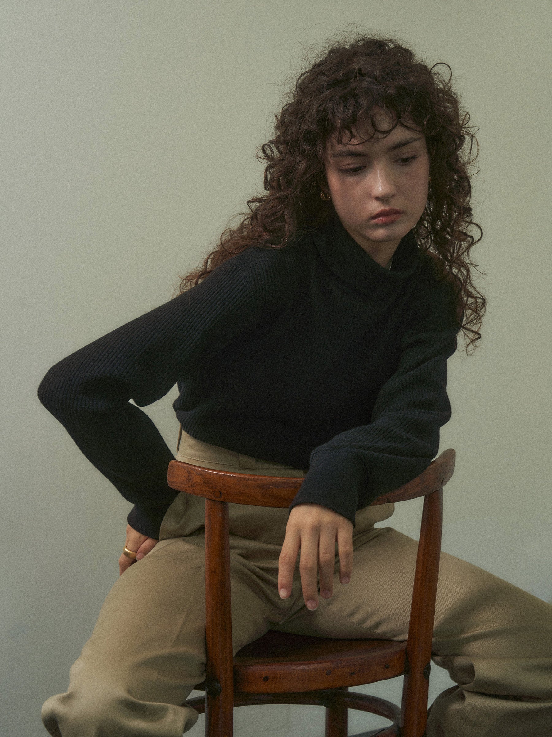 With a slightly longer length that covers the hips and an overlocked hem, it creates a clean and streamlined look without unnecessary bulk. Perfect for casual outfits, it can also be styled with a classic pearl necklace for an elegant, timeless vibe.
